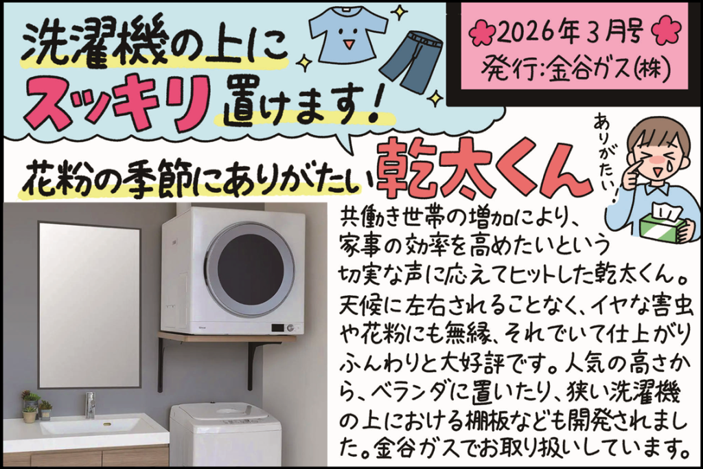 洗濯機の上に スッキリ置けます! 花粉の季節にありがたい乾太くん